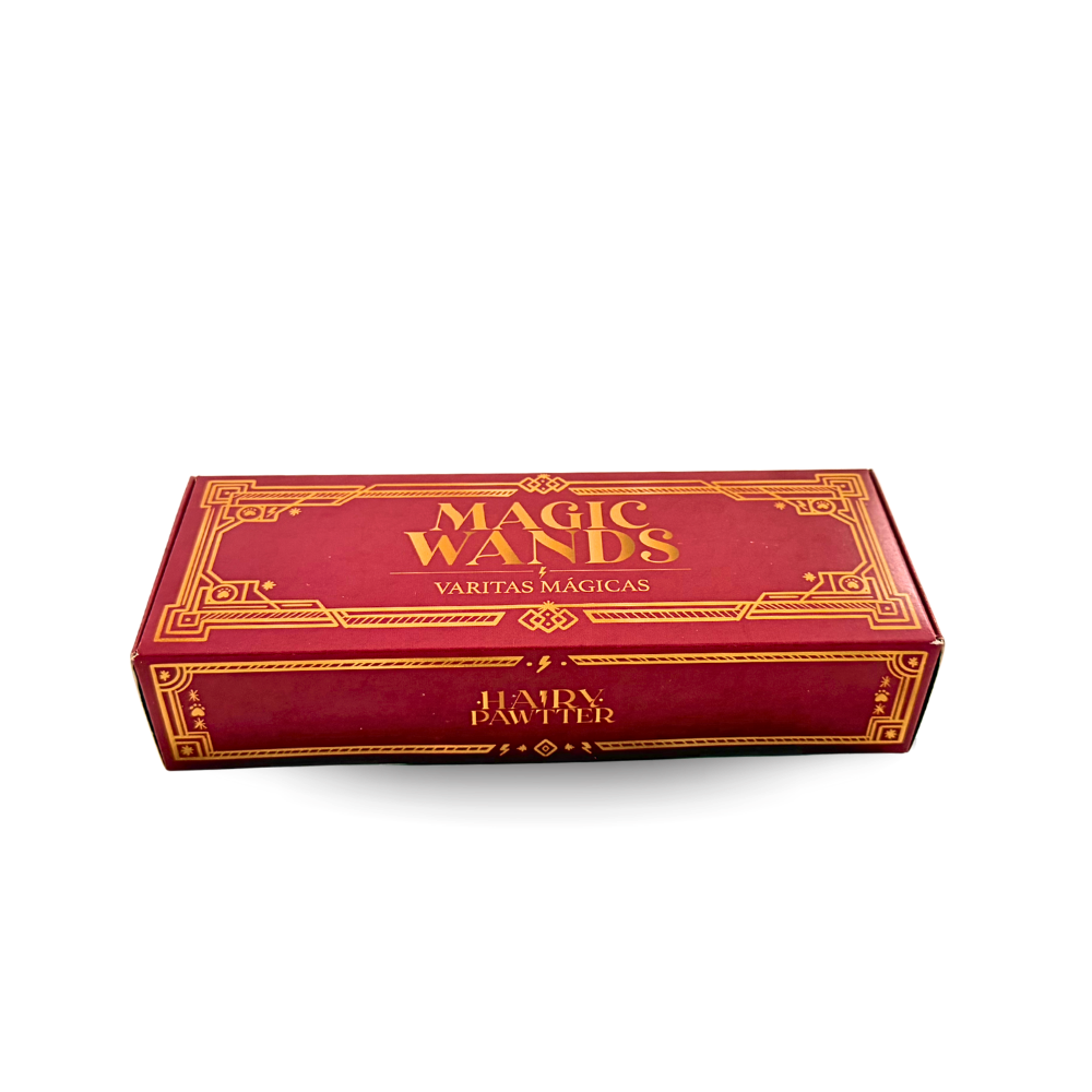 Estas varitas mágicas de Ha⚡ry Pawtter son puntas de cola de toro que simulan las varitas de la saga, presentadas dentro de una caja inspirada en la original donde los protagonistas guardaban las suyas. Un detalle especial y diferente que convierte este snack en algo más que un premio.