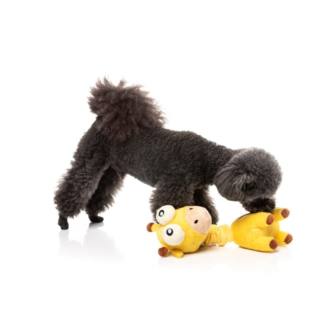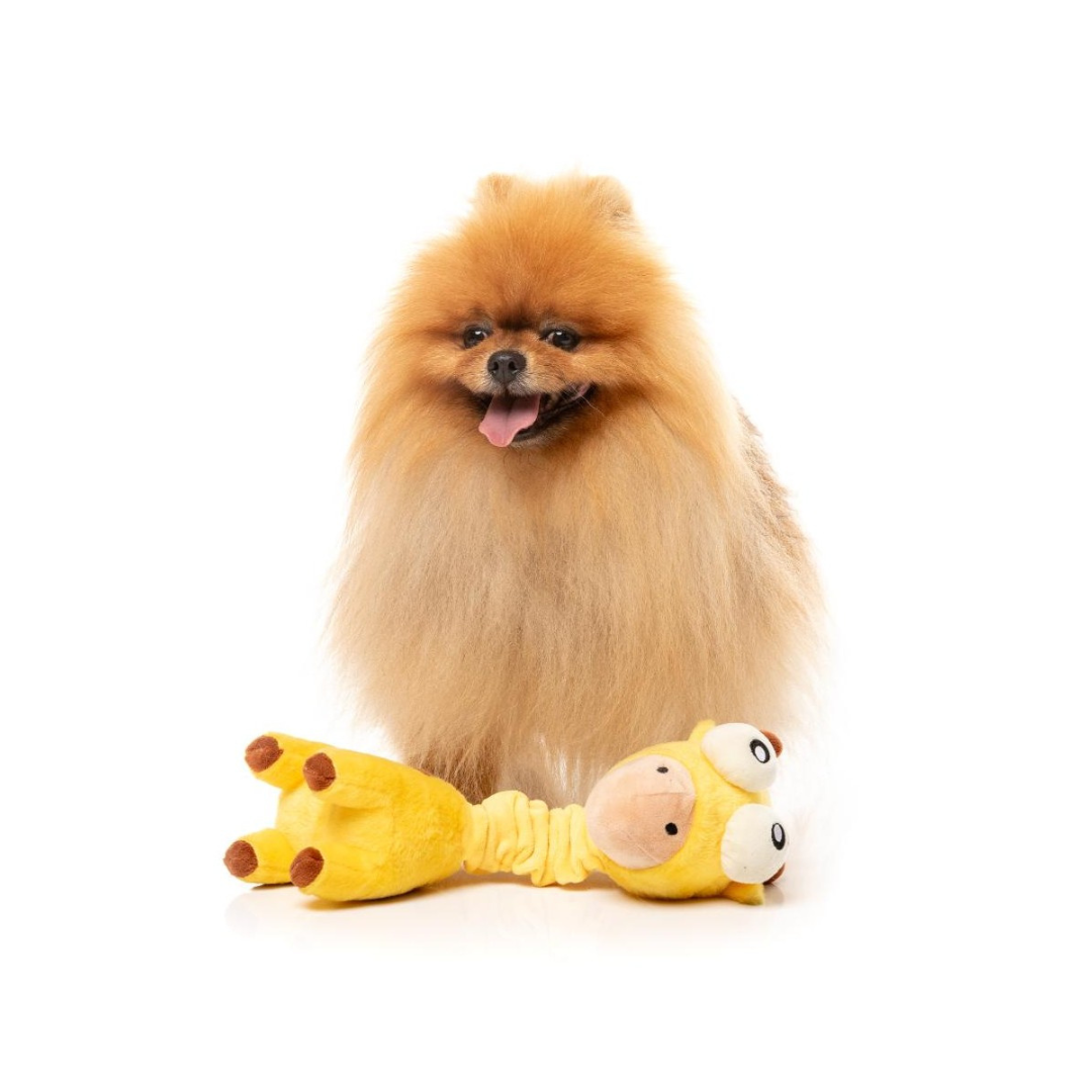 Incluye dos chirriadores integrados (uno en la cabeza y otro en el cuerpo) que emiten sonidos irresistibles con cada mordida o sacudida. De esta forma, tu perro disfrutará tanto en juegos activos como en momentos de calma.
